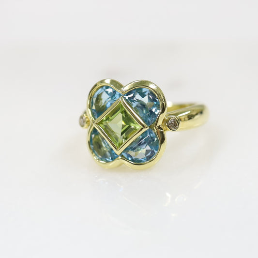 カラーフラワー・リング K18リング ペリドット&ブルートパーズ